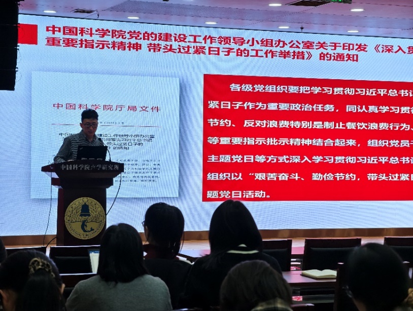 在“艰苦奋斗、勤俭节约,带头过紧日子”主题党日活动中,张波带领全体党员认真学习贯彻习近平总书记关于厉行节约、反对浪费特别是制止餐饮浪费行为、带头践行绿色生活方式等重要指示批示精神。会议强调,全体党员需以作风建设为抓手,密切联系群众,将理论学习转化为科研创新的行动力。
