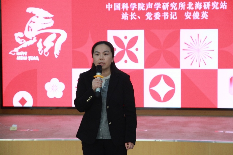 北海站站长、党委书记安俊英发表了新年致辞。安俊英表示,回首2025年,在中国科学院和声学所的正确领导下,在地方政府部门的鼎力支持下,我们迎难而上,奋力拼搏,始终坚持以习近平新时代中国特色社会主义思想为指导,全面贯彻落实党的二十大和二十届二中、三中、四中全会精神,高质量开展深入贯彻中央八项规定精神学习教育,不断推动党建和科研融合互促,努力提升党建工作质量;持续凝练和组织实施重大科研任务,科研平台、人才团队、创新文化、规范化及综合保障能力建设迈上新台阶,较好地完成了年度工作任务,衷心感谢全体职工的辛勤付出。安俊英表示,2026年是“十五五”开局之年,希望全体职工恪守国家战略科技力量主力军的使命定位,在新的一年紧抓机遇,乘势而上,努力取得新的成绩。