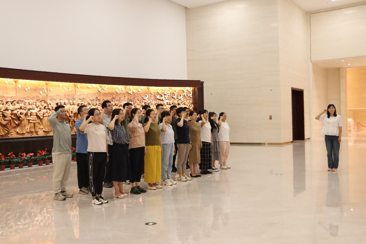 参观结束后,在党支部书记张莉的带领下,全体党员面对鲜红的党旗,庄严地举起右拳,重温入党誓词,铿锵有力的誓言响彻展馆,每一位党员都深深地感受到了作为一名共产党员的光荣与责任。