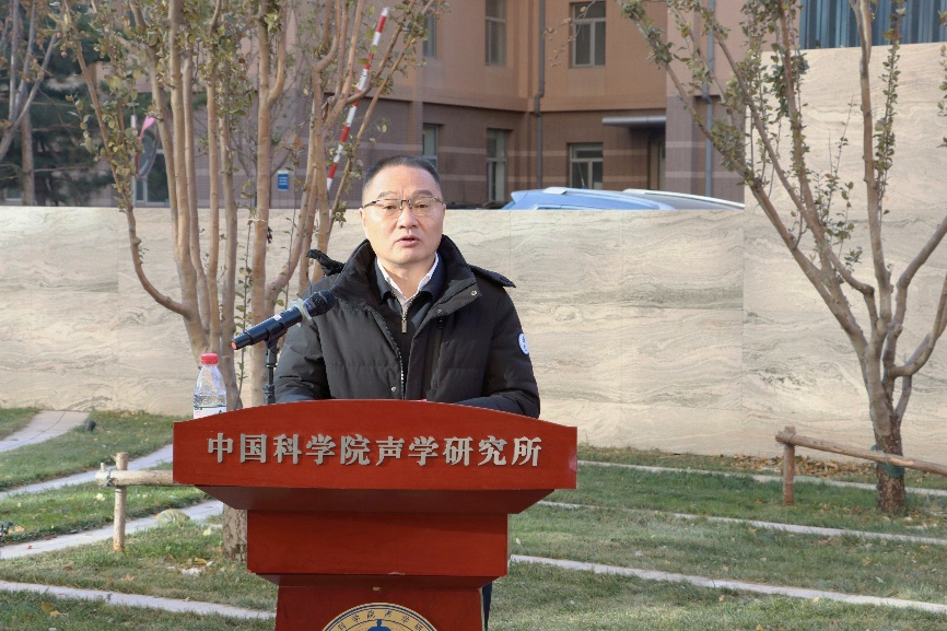 倪宏强调,树立三位先生塑像,是为了学习并发扬三位先生胸怀祖国、创新求索、勇攀高峰的精神;致敬先生们率先垂范,提携后辈,为声学所种下严谨求实创新奋斗的红色基因;更是为了激励后人以老一辈科学家为榜样,当好人民的科学家,建好国家的声学所。