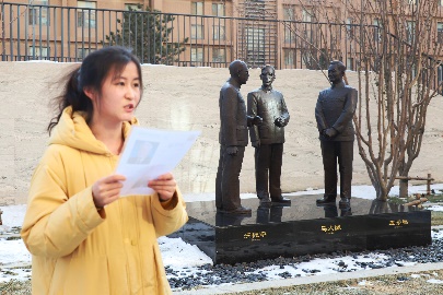 大家以庄严肃穆的氛围瞻仰 “汪德昭·马大猷·应崇福”院士的塑像,表达对他们的崇高敬意;曹子祎、余卿、曾欣三名青年代表深情诵读老科学家们的经典话语,带领大家传承和弘扬科学家的精神财富;六位献花代表向院士塑像献花,深切怀念他们对声学事业作出的突出贡献。