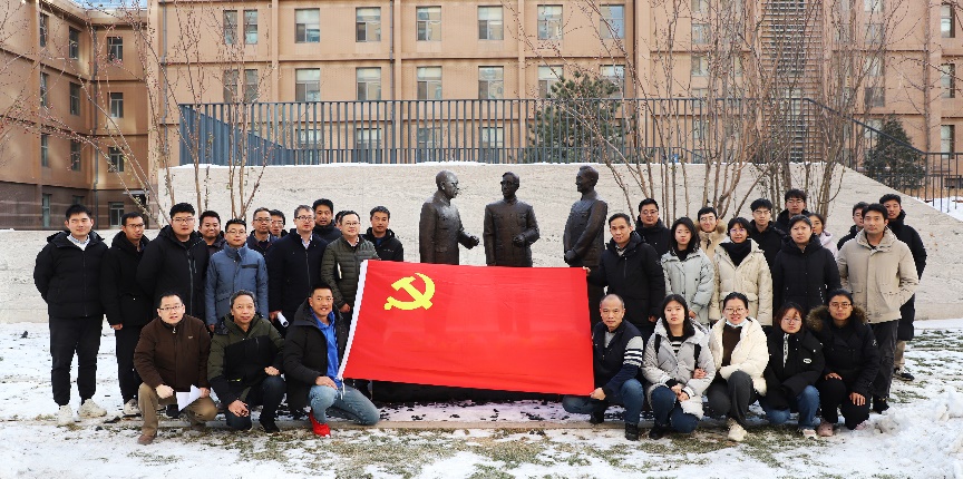 田杰带领大家瞻仰“汪德昭 马大猷 应崇福”院士塑像,全体同志向塑像三鞠躬,并向老科学家们致以最崇高的敬意!