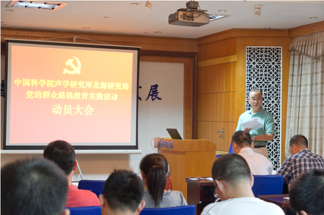 9月6日上午,北海站召开党的群众路线教育实践活动动员大会。声学所北海站督导组成员孙长瑜、李双田同志莅临指导。北海站全体在职党员、离退休党员代表及部分职工40余人参加了大会。会议由站长慈国庆主持。
