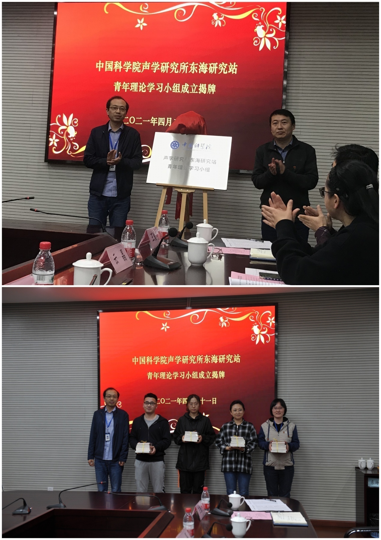 为进一步引导东海研究站青年牢牢把握政治方向,加强理论学习,努力打造一支政治素质优良、干事本领过硬、守纪律讲规矩的青年干部队伍,根据党史学习教育总体要求,东海研究站党委决定成立青年理论学习小组,会上综合办公室主任黄楚丹宣读了《东海研究站青年理论学习小组工作通知》,张伟才和团委书记牟宏宇为青年理论学习小组揭牌,并为青年理论学习小组组长赠送书籍。