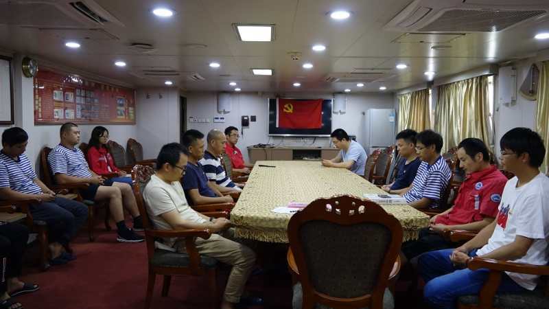 正在开展海上试验的科考团队也召开了海试党小组会,集体学习回信精神。