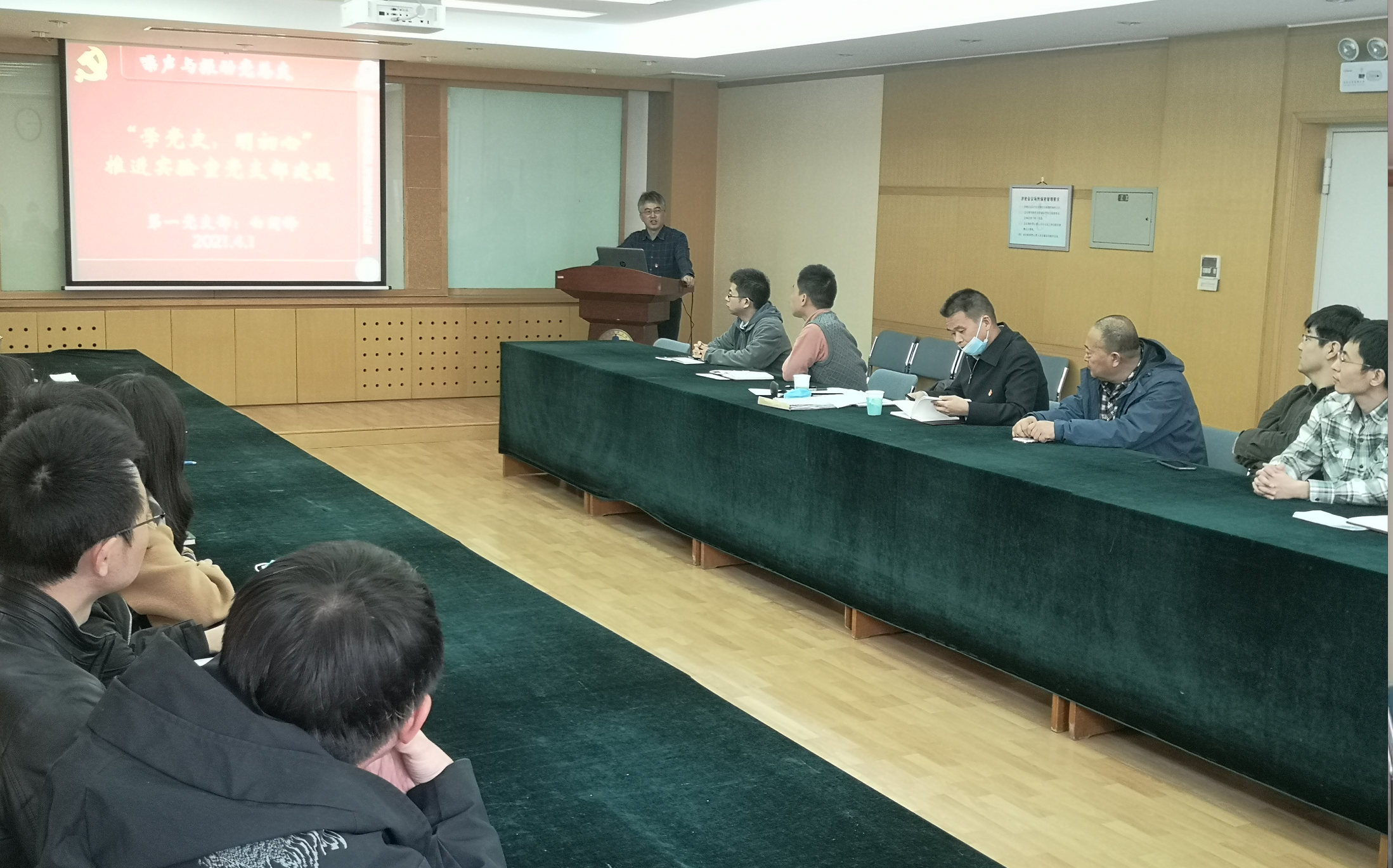 会上白国锋做了《“学党史,明初心”,推进实验室党支部建设》的党课,报告从党史学习的重要意义、党史的基本脉络、新民主主义革命时期重要事件和不忘初心的科学家精神等内容进行了阐述。