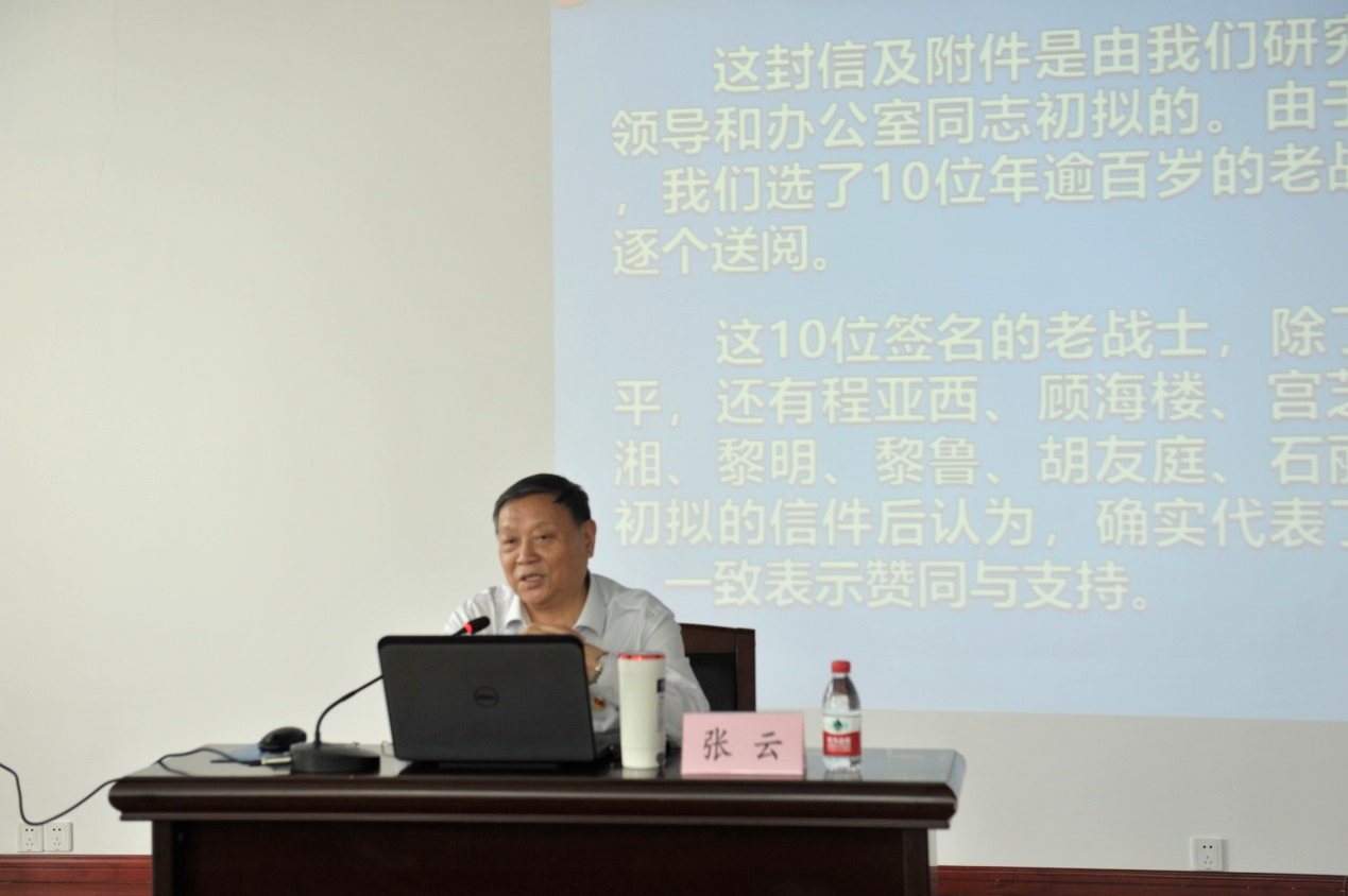 在党史学习教育专题党课环节,上海市中共党史学会名誉会长,上海抗战研究会会长,上海市新四军历史研究会常务副会长,国防大学政治学院教授张云以“学习习总书记回信精神不忘初心使命贵在坚持”为主题,从“习近平总书记给上海新四军历史研究会百岁老战士的回信究竟是怎么一回事”“上海为什么能够成为中国共产党的诞生地”“不忘初心使命贵在坚持”三个问题出发,通过丰富详实的史料、生动鲜活的事例、深刻透彻的思考,与大家重温了习近平总书记给上海新四军历史研究会百岁老战士的回信,深刻阐释了上海作为“初心之地、红色之城”的历史原因,以及共产党人为中国人民谋幸福、为中华民族谋复兴的初心使命。
