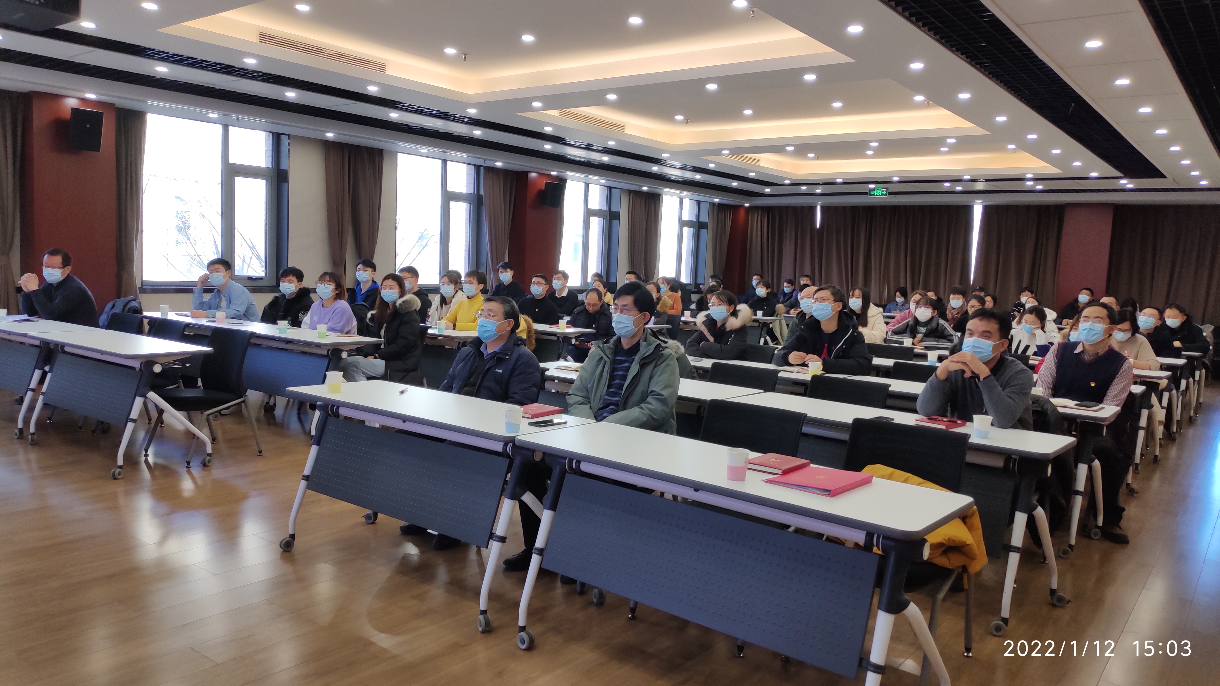2022年1月12日下午,超声党总支在DSP四楼多功能厅召开党员大会,进行党风廉政教育学习,共62名党员参会。党总支组织委员苏畅主持会议。