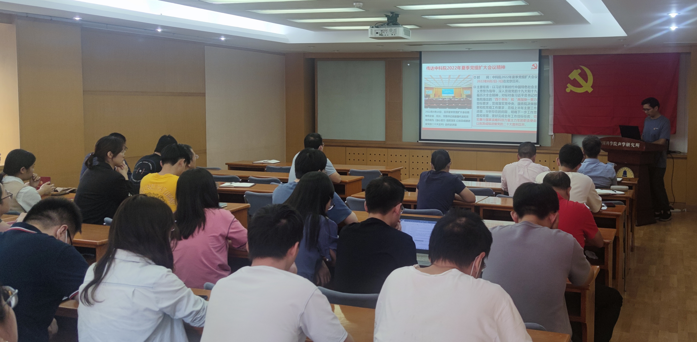 第二党支部书记姬培锋传达了院党组夏季扩大会议精神,带领大家深入学习了《习近平生态文明思想学习纲要》,并以《厚植科学情怀 弘扬科学家精神》为题交流了什么是科学家精神,介绍了代表科学家精神的声学所“三驾马车”先进事迹。