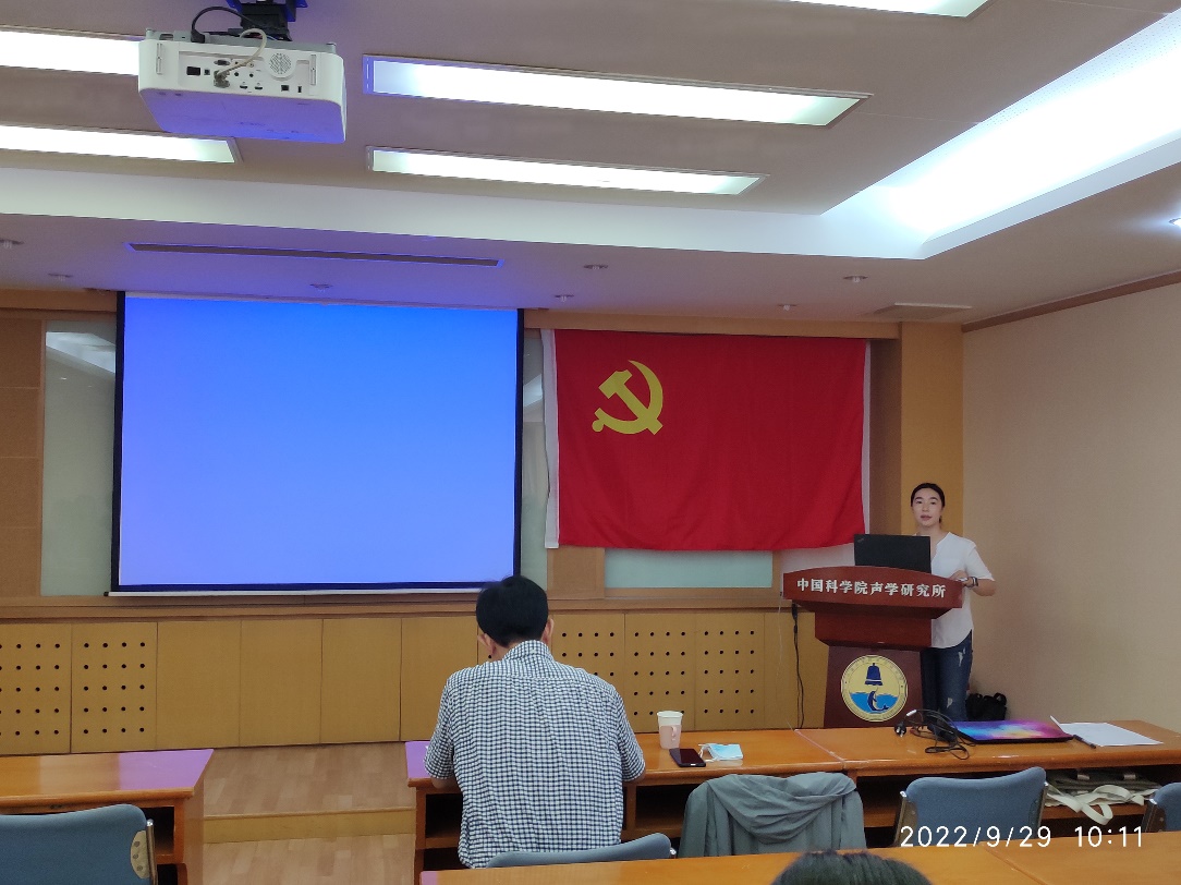 9月29日上午,超声学党总支第一党支部在德昭楼218会议室召开线下线上相结合的党员大会,开展“学习科学家精神,进一步推进落实基层组织建设见成效”主题党日学习活动。党总支副书记、第一党支部组织委员苏畅主持会议。所党委副书记、纪委书记李浩然出席会议。