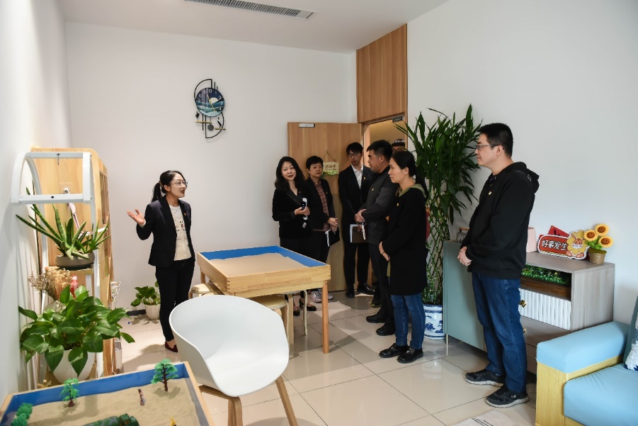 交流结束后,在李蕊的带领下,大家共同参观了中国民生银行信用卡中心的职工书屋、心理咨询室和党建展厅。
