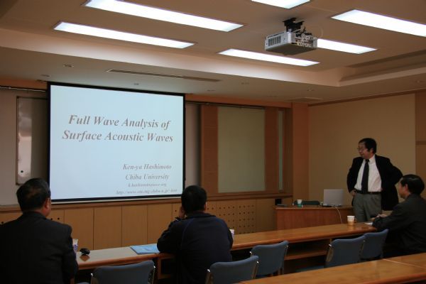 Hashimoto教授的研究在国际声表面波研究领域处于领先地位,在声表面波的理论分析方面造诣很高,同时拥有丰富的实际经验。目前Hashimoto教授已有百篇以上相关的文章发表,这些文章已成为声表面波研究领域内重要的参考文献。作为IEEE UFFC Distinguished Lecture Program所资助的讲座人之一,Hashimoto教授曾于去年来中国做巡回讲座,并应聘成为我所的客座教授。上一次的讲座给人留下了深刻的印象,这次的学术报告也非常具有启发性,让与会者受益匪浅。