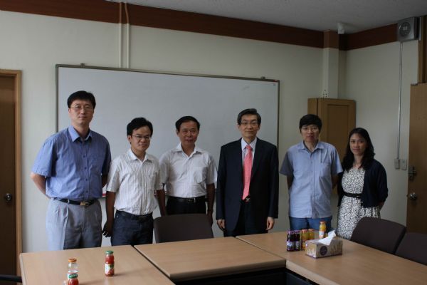7月22日,声学所访问团访问了韩国著名的高丽大学,与高丽大学电子工程系高技术材料与器件研究所Prof.Pak James Jungho进行了会谈。Prof.Pak于1992年在美国Purdue University获得博士学位,自2007年起担任高技术材料与器件研究所所长。Prof.Pak对其实验室的主要研究工作进行了介绍,特别介绍了基于碳纳米管的生物与气体传感器检测;声学所王文副研究员则重点介绍了我所在声表面波传感器方面的研究进展情况。会谈中何世堂研究员提出了将声表面波技术与CNT结合对气体进行检测的研究设想,得到了Prof.Pak的认同。双方认为在气体检测与生物传感方面有极大的合作空间,何世堂研究员邀请Prof.Pak在方便的时候访问我所,Prof.Pak 希望在合适的时候签订双方的科研及学术交流合作协议。