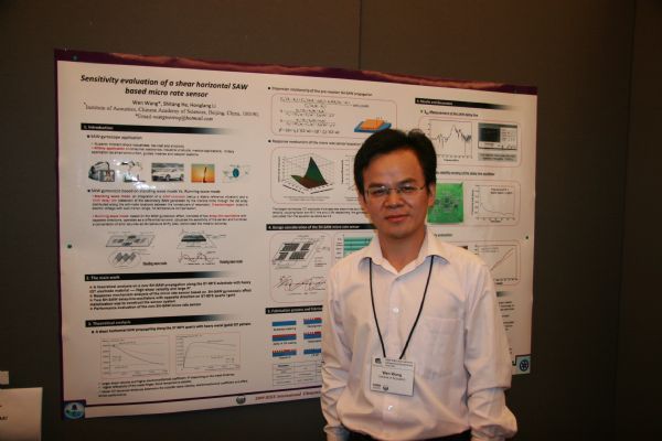 中科院声学所超声与微机电实验室以何世堂研究员所率领的研究团队主要从事声表面波技术的研究,早期主要集中在信号处理方面应用,近几年转向以传感器为主:包括声表面波气体传感器、生物传感器、陀螺仪、压力传感器、结冰传感器等。生物传感器主要采用液相传感器,Love波传感器因适合液相应用且灵敏度高而成为研究热点。本课题组目前也投入了不少力量从事Love波传感器的研究。通过参加这次会议,我们可以关注国际上的新思路。