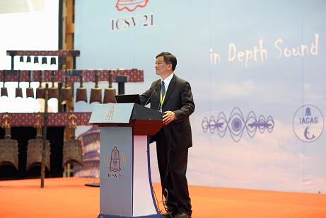 2014年7月13-17日,第21届国际声与振动大会(the 21st International Congress on Sound and Vibration)在中国北京隆重召开。中国声学学会理事长田静为本次大会的主席。国际声与振动学会(IIAV)主席Marek Pawełczyk 和Malcolm J. Crocker教授在开幕式上致辞。中国声学学会王小民、宗健、毛东兴副理事长出席了会议。