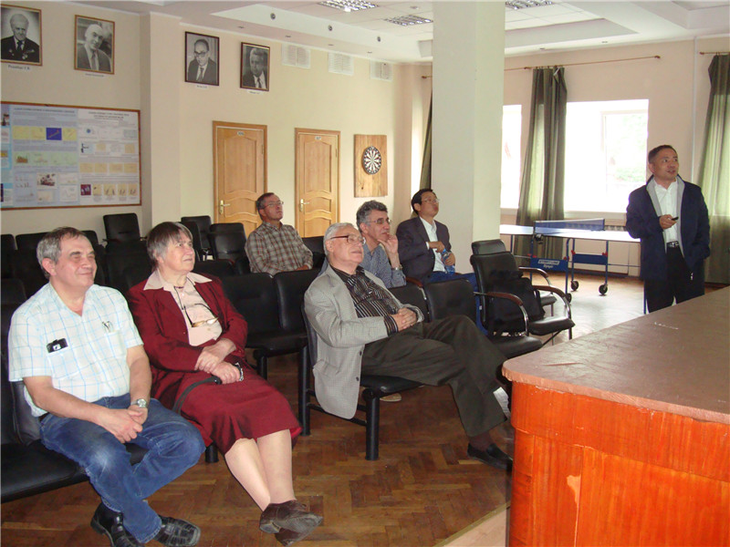 在学术交流会上,通信声学实验室主任李晓东研究员作了题为"Study of Communication Acoustics"的报告,杨亦春研究员作了题为"Study of an Infrasound Event in March 2014"的报告,并就这两个专题与俄方学者进行了深入的探讨。俄方专家对我所在自然事件次声波研究领域取得的进展表示了高度关注,期待能够在该领域进一步研究与合作。俄罗斯科学院Golicyn G. Sergeevich院士谈到了他对地震波的观点,对可能存在的地震前兆次声波研究表示支持与肯定,Igor Chunchuzov教授提出了利用CASI-ISM-2013型次声传感器在北京和莫斯科分别建立次声观测网络来研究中尺度距离的次声传播规律。