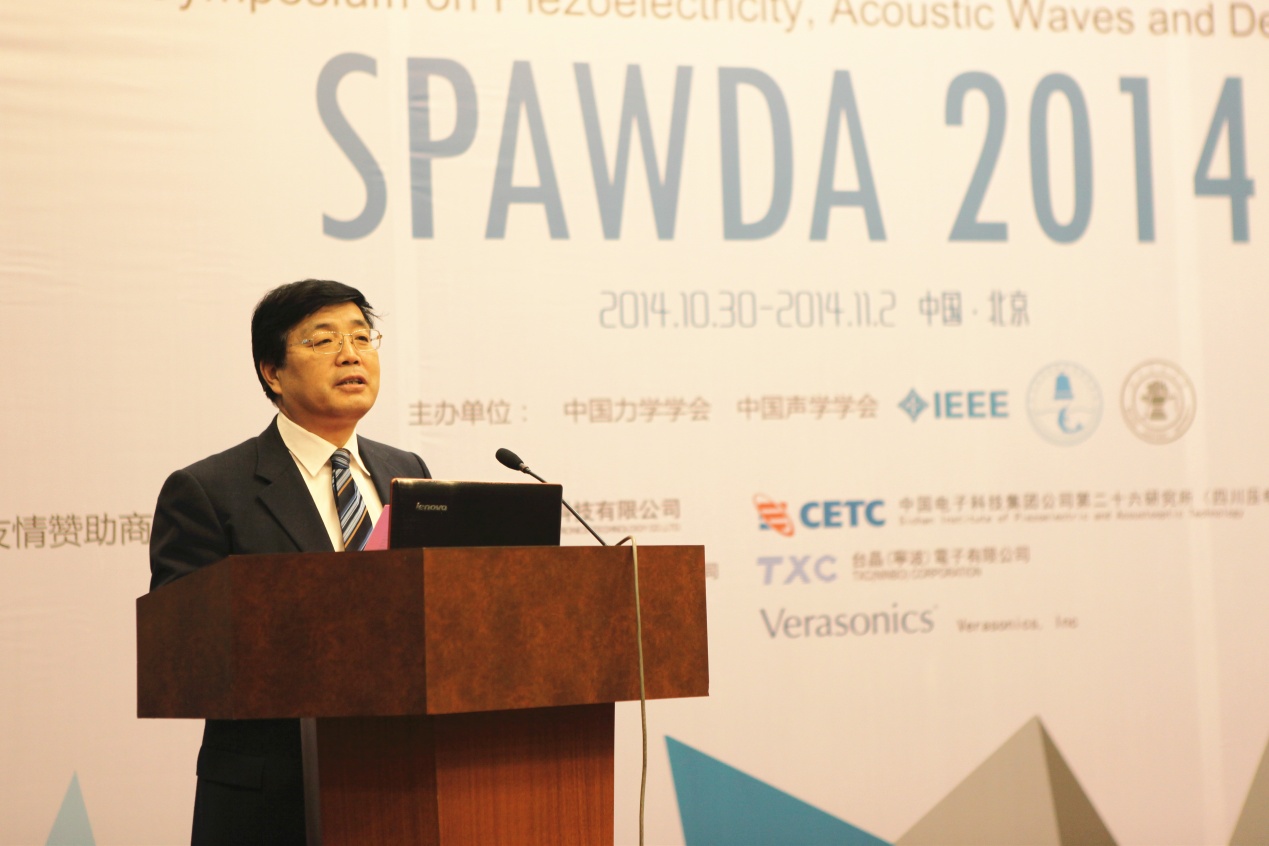 王小民所长在致辞中,首先代表会议承办方,中科院声学所及北京交通大学,向会议的发起方中国声学学会、中国力学学会及IEEE UFFC分会表示感谢。王所长指出,压电器件和声波理论的深入研究为声波器件产业的发展提供了新的思路,声波器件产业快速繁荣又面临诸多实际技术难题。需求造就盛会,相信此次压电和声波理论及器件应用研讨会将是一场该领域的盛宴。王所长对为准备会议做出贡献的工作人员表示了感谢,并预祝大会圆满成功!