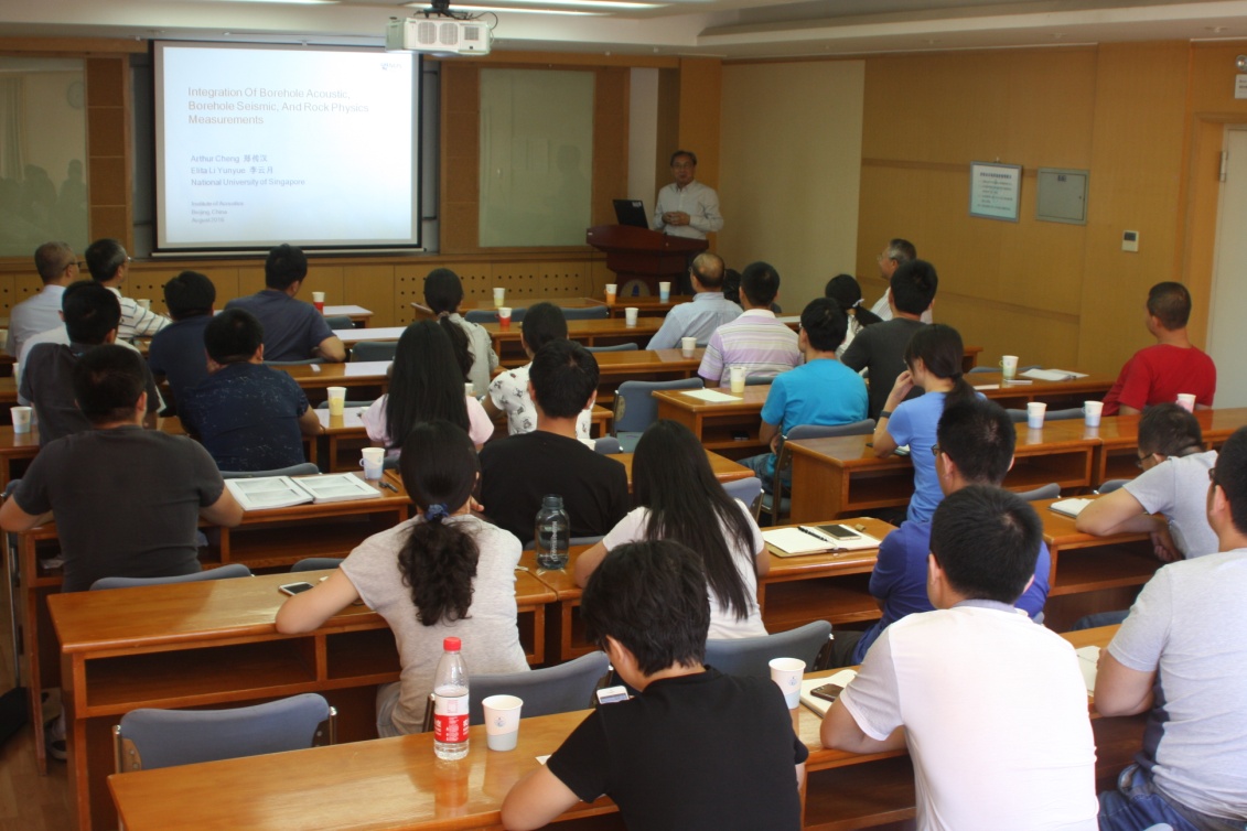 应声学所超声技术中心王秀明主任的邀请,新加坡国立大学的Arthur Cheng教授和中国石油东方物探公司余刚博士于2016年8月31日来访声学所,并分别作了题为“Integration of borehole acoustic, borehole seismic, and rock physics measurements”和“Walkaway VSP using multimode optical fibers in a hybrid wireline”的学术报告,会议由王秀明主任主持,超声技术中心的张海澜研究员、林伟军研究员、丛健生研究员、陈德华研究员、陈浩研究员等参加了报告会。