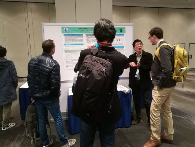 团队分别进行了题目为“An Audio Loudness Compression and Compensation Method for Miniature Loudspeaker Playback”和Auditory-Based Smoothing for Equalization of Headphone-to-Eardrum Transfer Function”的海报展示,引起了与会者的关注和热烈的讨论,尤其引起了多家音频企业的关注,纷纷表示进一步合作意向。