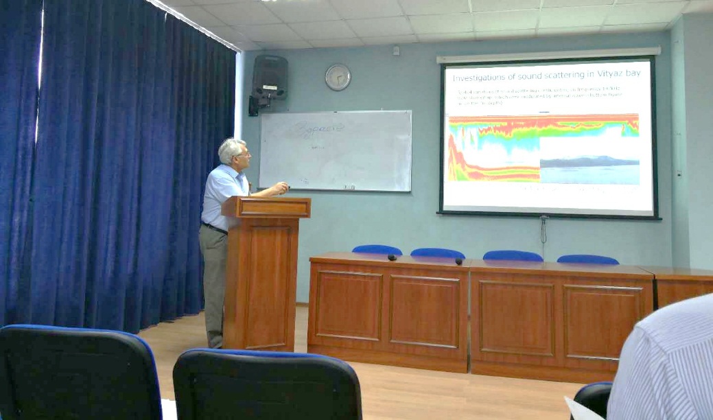 7月20日,代表团抵达俄罗斯联邦符拉迪沃斯托克市,俄罗斯科学院远东分院太平洋研究所所长Lobanov院士对v体育,vsport体育,vsports-胜利因您更精,v体育官网新闻,足球新闻直播,世界杯直播,欧洲杯直播,亚洲杯直播,实时比分直播,赛马结果直播,网球赛事直播,体育视频直播,赛季分析直播,球员动态直播,比赛预告直播,足球转会直播,足球集锦直播,网球赛程直播,体育数据直播,足球赛事直播,篮球战术直播代表团来访表示热烈欢迎,并介绍了太平洋海洋研究所的历史传承、发展现状以及学科优势,海洋物理实验室Vladimir A. Bulanov教授,Vladimir Korenbaum教授,海洋声学实验室M. Y. Nikolayevich教授等俄方代表分别介绍了太平洋海洋研究所在远东和北极海区海洋上表层声场分析、水下人体呼吸系统监测、水声通信等研究领域的进展情况,并就冰下表层气泡、生物群体、昼夜变化对声散射的影响、日本海大陆架夏季声散射分布情况、远程水声信息传输等方面进行了详细讲解,充分展现了太平洋海洋研究所在海洋声学领域突出的研究成果与丰富的工程经验。