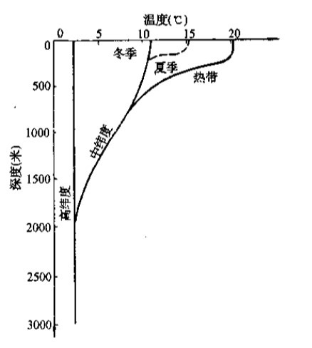 ▲ (开阔海域的典型温度剖面图)