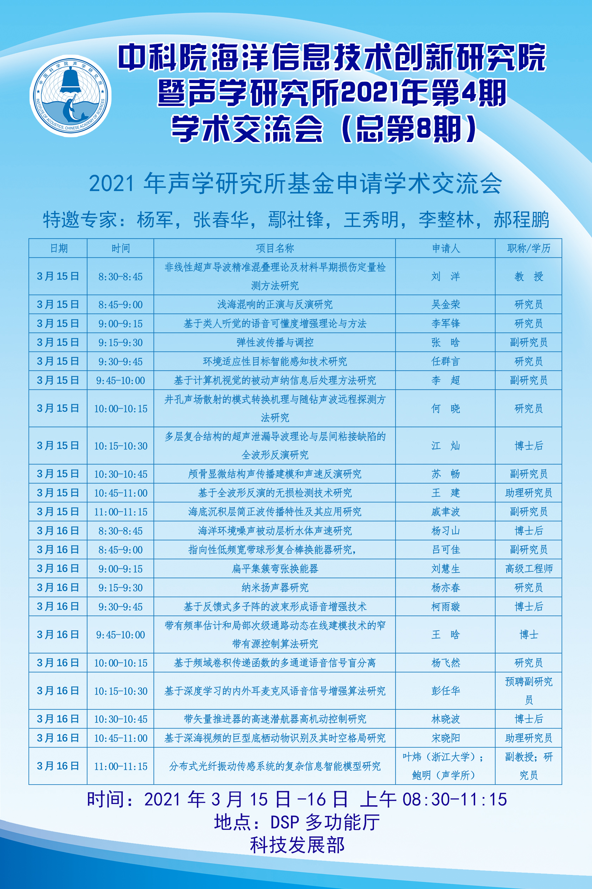 中科院海洋信息技术创新研究院暨声学研究所2021年第4期学术交流会通知
