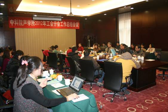 为深入贯彻落实党的“十八大”精神,进一步加强和改进基层工会建设,切实履行工会各项职能,提高工会对广大职工的凝聚力,更好地服务于科技创新,2012年12月28至29日,声学工会召开了分工会工作总结会。所工会主席李平、常务副主席周秀霞、工会委员会委员、经审委委员、各分工会主席及工会工作积极分子等共计30余人参加了会议。会议议程主要包括工会工作培训和各分工会年度工作总结报告暨“优秀分工会”评选两部分。工会主席李平主持会议。