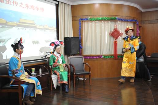 迎新春联欢会在热切期待和一片欢歌笑语中拉开序幕。各室职工们自编自演,表演形式有歌曲、小品、舞蹈、乐器演奏、魔术、互动游戏、抽奖等,他们用各自不同的方式共同抒发了对单位的无限热爱,表达了对美好生活的向往和憧憬。一曲《恭喜发财》高调开场,瞬间调动现场气氛,二室小合唱《喀秋莎》、三室的钢琴伴奏《儿歌串烧》、五室小品《甄嬛外传之东海争艳》、中心舞蹈《团结style》、机关的相声《宇宙牌香烟》、研究生代表吉他弹唱《故乡》更是让职工们眼前一亮,掌声不绝。