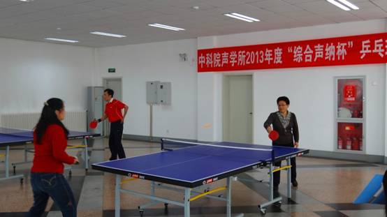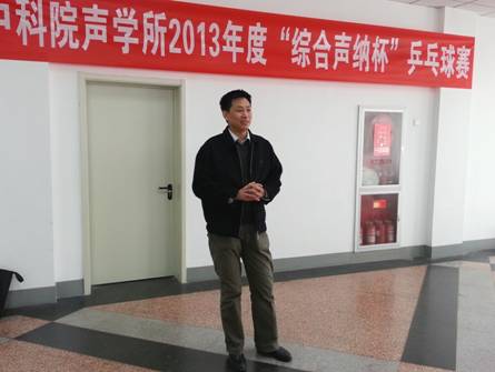 2013年4月15日12:30,声学所2013年“综合声纳杯”乒乓球赛在声学所职工活动中心正式开幕!该比赛是2013年度声学所系列文体比赛的第一项赛事,由所工会、所团委主办,所研究生会协办,乒乓球协会承办,旨在进一步丰富全所职工、学生的业余文体生活,增进友谊,增强大家的身体素质,缓解科研压力。比赛得到了综合声纳实验室的大力赞助。所党委书记张春华,综合声纳实验室副主任刘纪元,所工会职代会主席李平,所务助理、所工会职代会常务副主席周秀霞出席了开幕式。