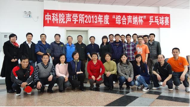 2013年4月19日,2013年声学所“综合声纳杯”乒乓球赛在声学所职工活动中心圆满落幕。所工会职代会主席李平、综合声纳实验室副主任刘纪元以及所务助理、所工会职代会常务副主席周秀霞出席了闭幕式。