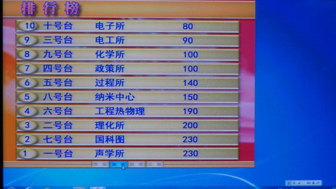 最后的加赛过程中,声学所经历了一个小波折。在首个加赛题两队全部答对后,决定冠军归属的一道抢答题摆在两队面前。声学所队在第一次抢答违例被扣分的不利条件下,在第二次抢答中顶住压力,成功抢中并做出正确回答,将两队又拉回到同分状态,最终在仲裁委员会的裁决下,声学所代表队与国家图书馆代表队并列获得第一名。