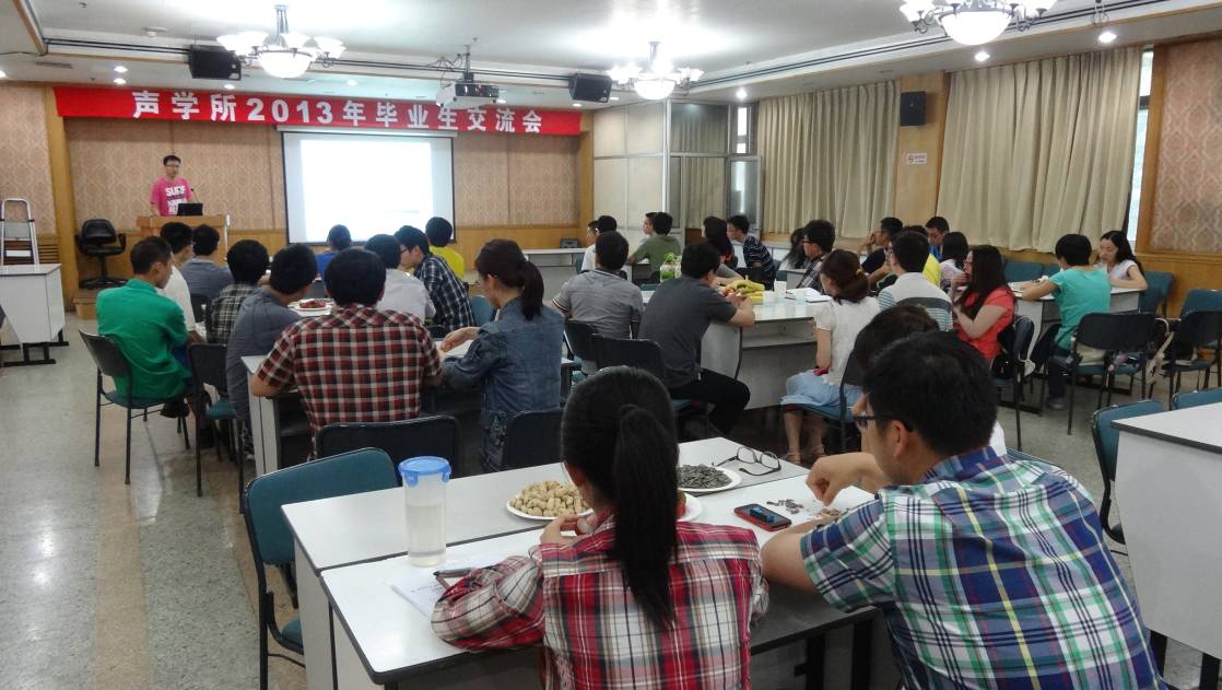2013年6月4日下午,2013年毕业生经验交流会在声学所多功能厅成功举行。经验交流会由研究生会学术部部长寇毅伟主持,寇毅伟首先对来参加本次经验交流会的各位硕士,博士毕业生表示感谢,对参加汇报会的各位低年级同学表示欢迎,然后就今年我所研究生就业去向进行了简要的汇报。