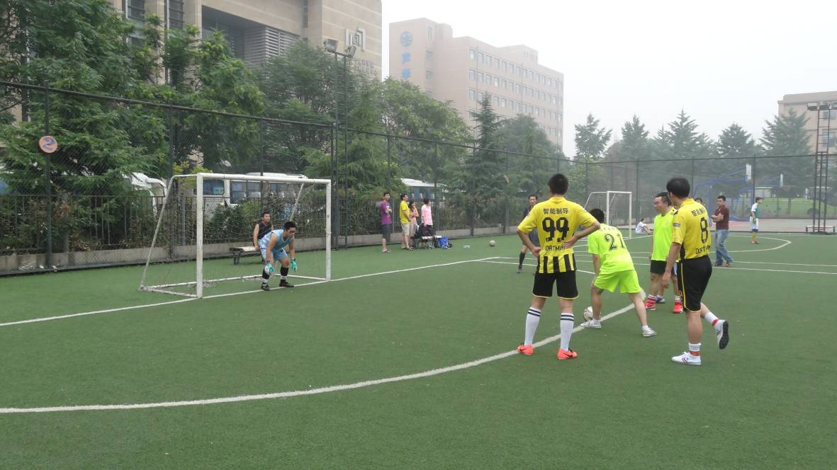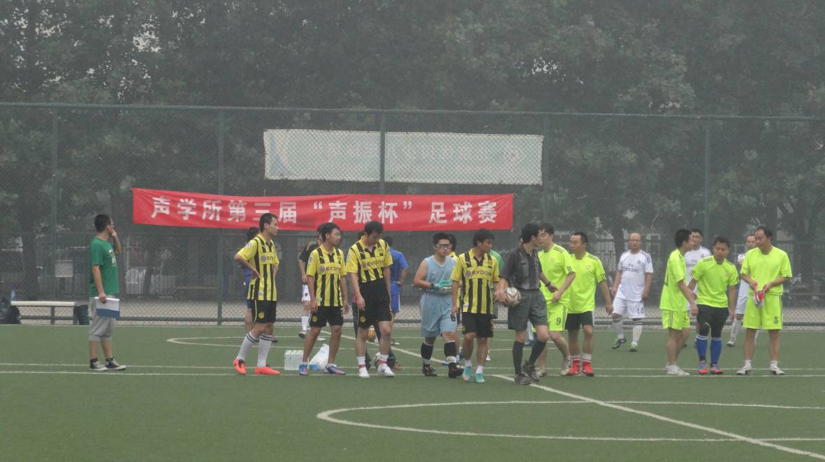 尽管天气闷热,但各支队伍斗志不减,早早来到了足球场进行热身运动。首先进行的三场比赛是,机关联队VS高性能网络队,声学智能制导队VS噪声队,综合声纳&语言声学联队VS水声换能器队。六支队伍实力都比较强劲。