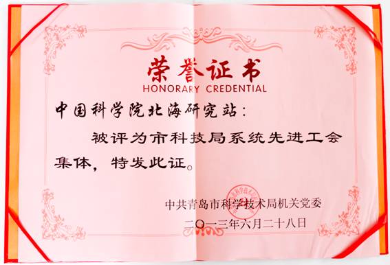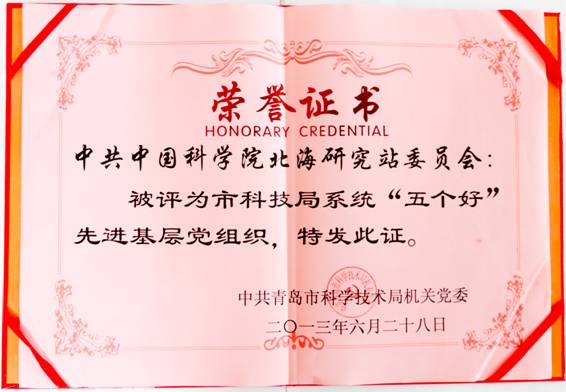 纪念中国共产党成立92周年之际,在中共青岛市科技局机关党委系统先进集体和先进个人年度评选活动中,北海站党委荣获“五个好”党组织称号,北海站工会也被青岛市科技局授予“先进工会集体”荣誉称号。
