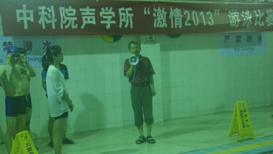 2013年7月15日,声学所“激情2013”游泳比赛如期在vsport体育中关村园区青年公寓游泳馆举行。本次比赛由声学所工会和团委主办,所游泳协会和所研究生会承办,旨在进一步丰富所内文化生活,努力营造积极向上、百花齐放、健康文明的科研气氛。在报名阶段,所职工和研究生都积极参与,共有39人共计超过50人次报名参加五个常规竞技项目以及三个趣味项目的角逐,同时来观看比赛的观众也不在少数。在比赛当天,我们还邀请了所工会职代会主席李平老师和所工会职代会常务副主席周秀霞老师到场观战并作开闭幕式致辞。