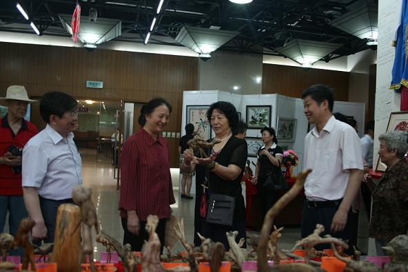 中科院党组方新副书记、离退休干部工作局孙建国局长、李杰副局长观看根雕作品