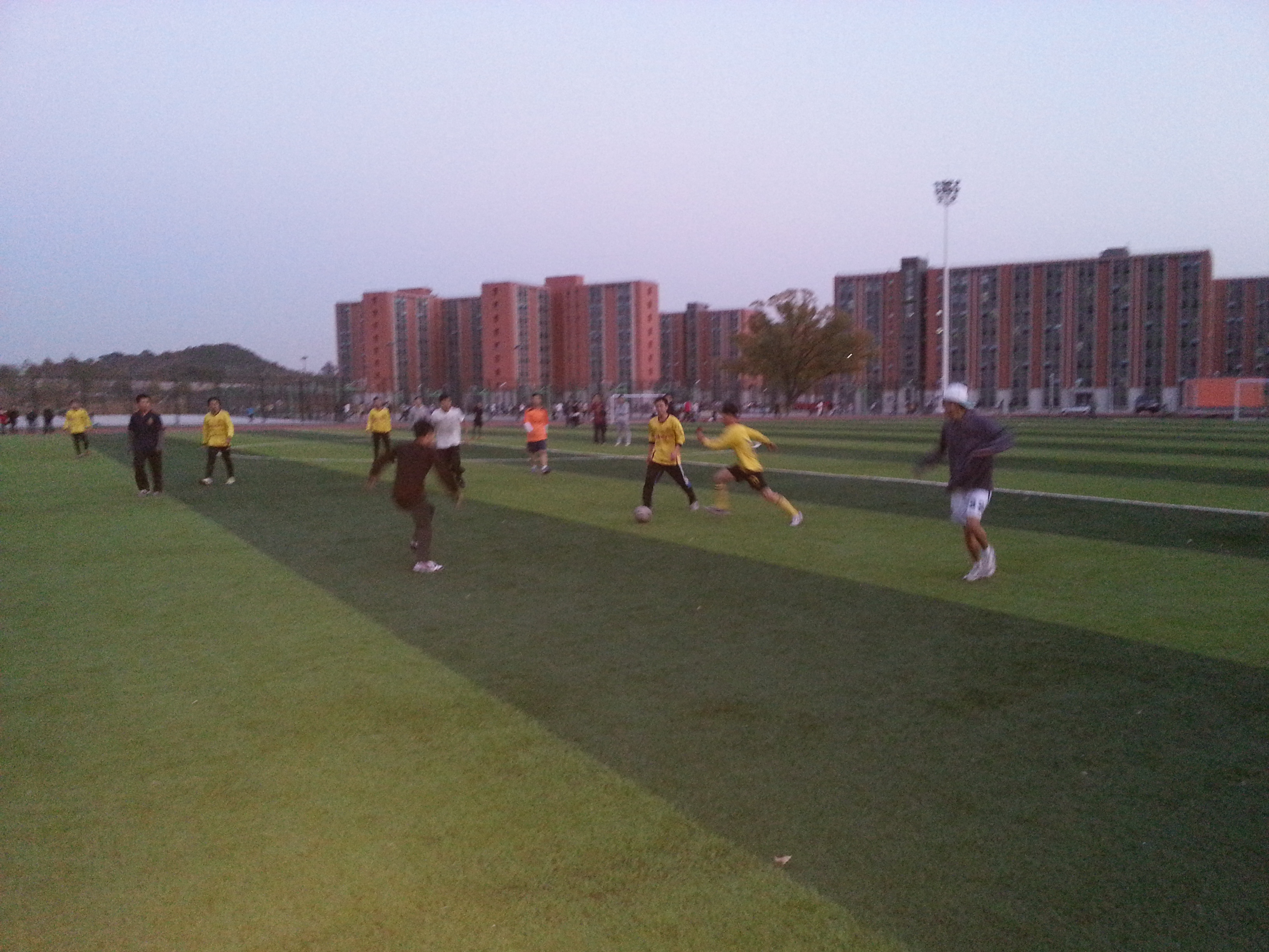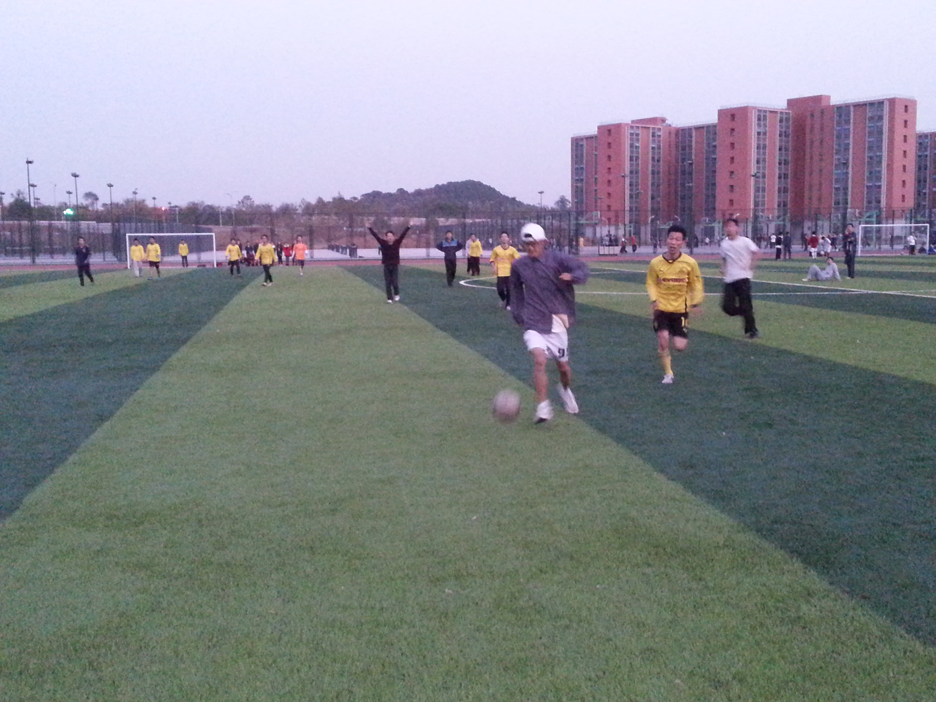 为了增进声学所研一新生各班级间的感情,加强同学们之间的交流,20131028日,在雁栖湖校区学习的研一三个班级在足球场举行了一场足球友谊赛,由四班和六班队员组成联合队,对阵五班。