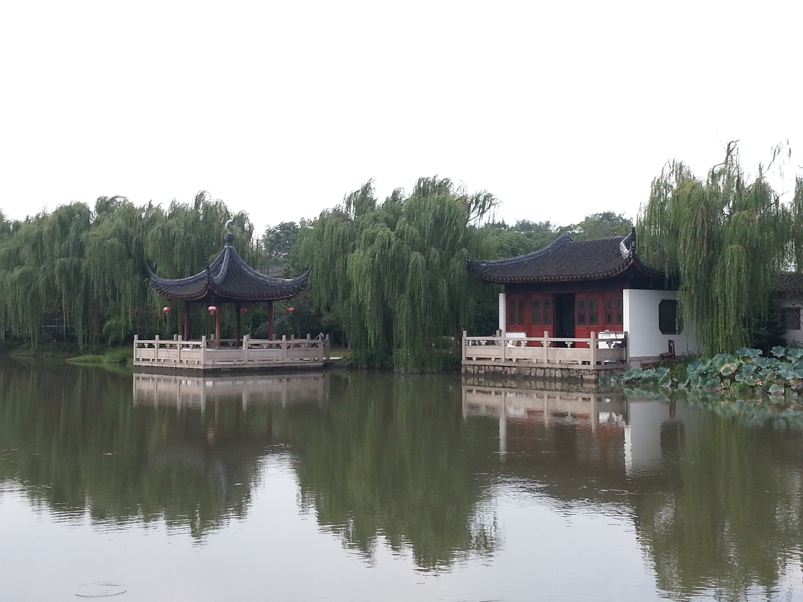 中午用过午餐后,前往大唐生态园。大唐生态园坐落在昆山千灯镇南头的大唐村里。生态园总规划建设面积3000亩,内设优质果品栽培区,特种蔬菜栽培区,优质水产养殖区等,通过种植各种奇花异草,建造小木屋、仿古建筑来打造一个休闲环境。在生态园里有两个湖泊,大的约有百亩,小的50亩。湖水清澈,与千灯古镇区的河道——千灯浦相通,流向吴淞江。退休的老同志们时而低头欣赏,时而用相机拍下美丽的风景,三五成群说说笑笑,沉醉在大自然的风光中,好不惬意!