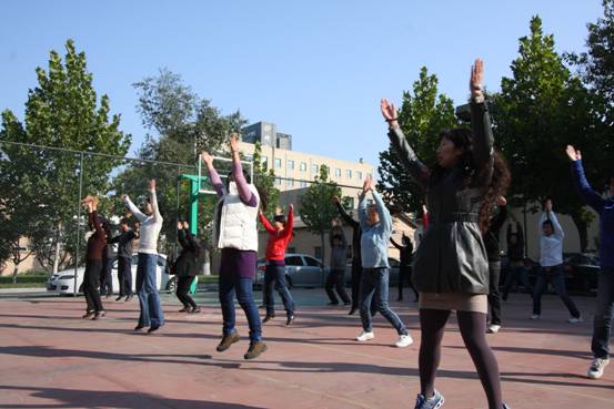 为了更好的普及第八套广播体操,同时活跃实验室工作学习氛围,超声实验室分工会于1025日组织号召室内全体职工及学生学做标准的第八套广播体操,得到了大家的热烈响应和支持。上午945分,全室人员在声学所的篮球场里集合排成方队,黄宝华老师面对整齐、朝气的方队,热情洋溢地讲解了每个动作的要领,细致认真地提示大家每一节体操所针对的部位,大家跟着比划,仔细模仿;抓细节,认真体会;抠动作,反复练习;力争最好,使身体各部位得到最好的活动和锻炼。短短十几分钟的学习,让大家身体热乎了,心情也愉悦了,并展现了超声物理与探测实验室奋发向上的精神风貌。我想如果我们每天能坚持这十分钟,而且尽量将头昂起、将手伸长、将腰身展开、将腿抬高,做到“十分”满意,那么那些办公室疾病就会慢慢远离我们的身体,健康和快乐将充斥我们的工作生活。