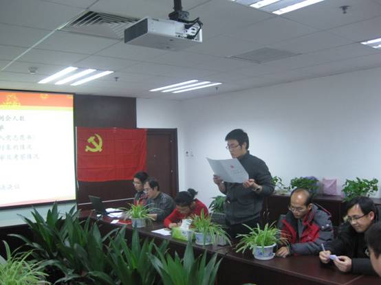 20131227日下午2点,高性能网络支部在DSP大楼5层召开了接收秦小伟同志为预备党员的大会,支部联系人、所党委委员李淑秋同志参加会议。