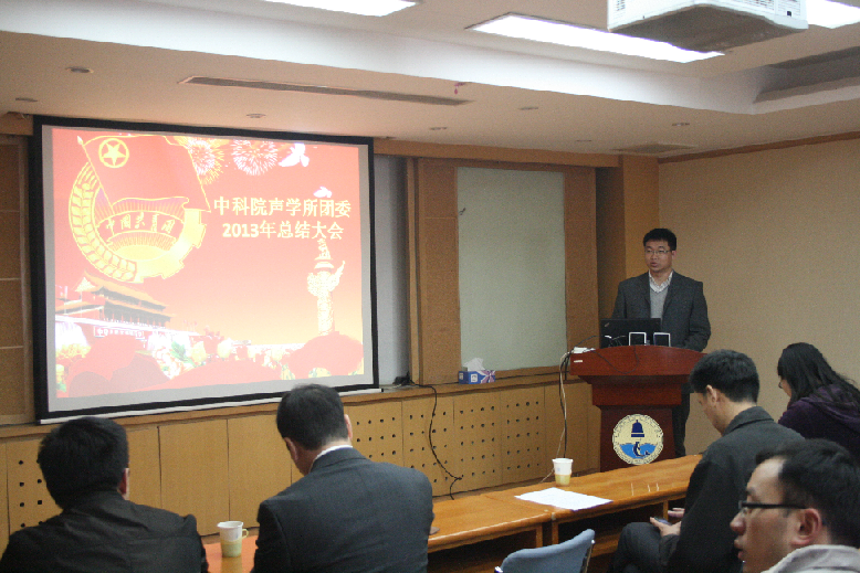 会议由所团委委员杨中臻主持。在奏唱国歌后,所团委副书记杨波作了声学所团委2013年度工作总结。杨波副书记分别从“青年思想教育工作”、“完善优化团委建设工作”、“配合所职能部门工作”、“参加院团委及兄弟院所活动”、“所内举办各类活动”、“指导所研究生会的工作”等方面对团委过去一年工作积累的经验与存在的不足作了全面的总结,提出了2014年度的工作重点和改进措施,表示团委将继续依托各个团支部,紧密联系研究生会和各社团、协会,继续为职工和青年学生创造一个好的平台,扎实完成好各项工作。围绕今年“改革奋进”的工作主题,结合纪念建所50周年系列活动,团委将以创新引领工作方向,积极配合所职能部门完成各项工作。