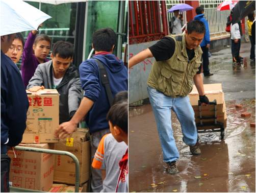 雨中搬运慰问物品