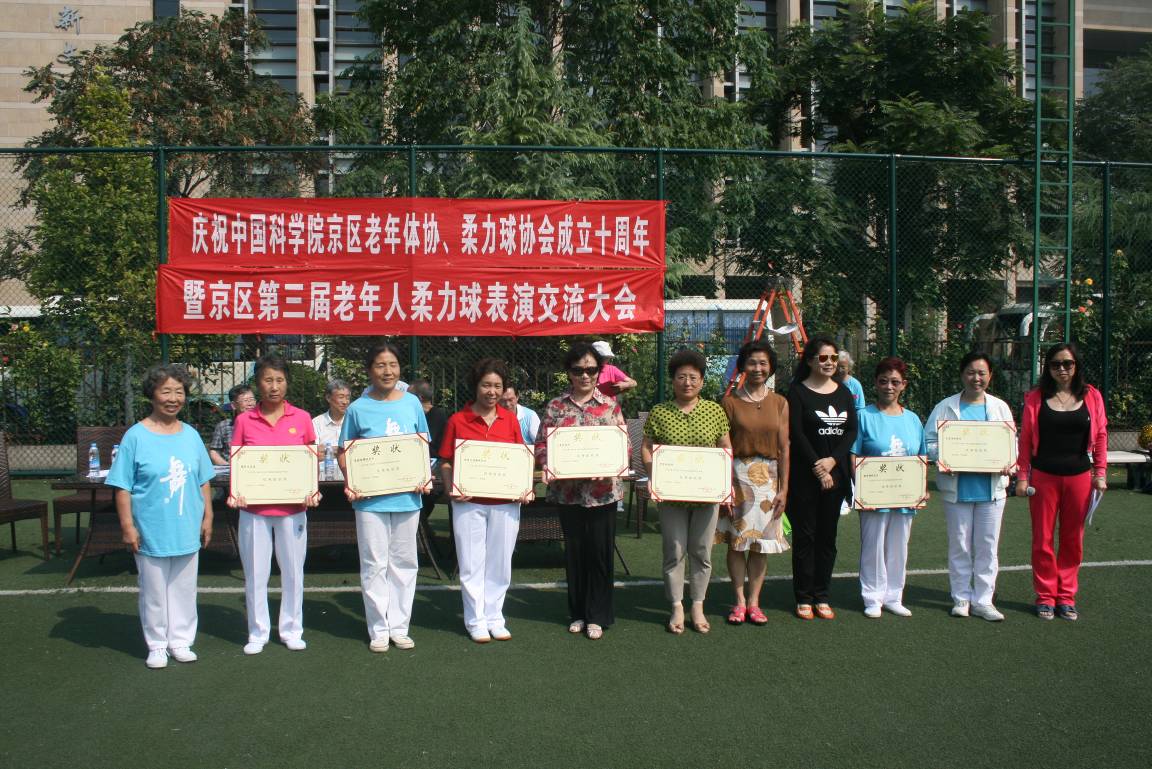 为庆祝京区老年体协柔力球协会成立10周年,京区第三届老年人柔力球表演赛于201495日在中关村体育场举行。中科院14个单位共218人组队参加了集体表演赛,我所共有9 位老同志参赛,荣获规定套路最佳优秀奖、花样传球项目最佳表演奖和优秀组织奖。