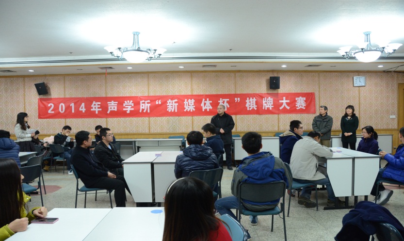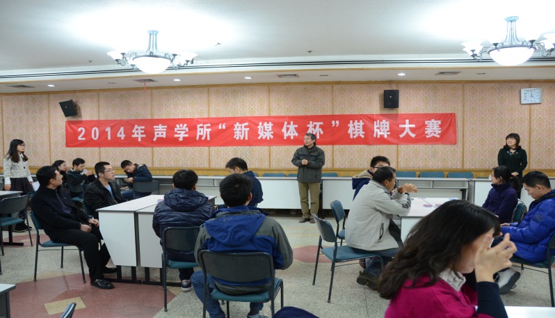 2014122日,由声学所工会、声学所团委主办,国家网络新媒体工程技术研究中心赞助,声学所棋牌协会承办的一年一度的 “新媒体杯”棋牌赛在声学所DSP多功能厅隆重开幕。“新媒体杯”棋牌大赛为我所传统活动,旨在活跃声学所广大职工与学生的业余生活。通过本次比赛希望选手们在繁忙的科研之余劳逸结合,增进交流,缓解工作压力,提高科研效率。本届棋牌大赛分为升级大赛和三国杀挑战赛,我所职工和研究生参与积极,共有41支队伍,96人参加比赛。其中升级比赛设在DSP多功能厅,有27支参赛队伍,三国杀挑战赛设在北二楼活动室,共14支参赛队伍。
