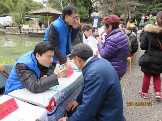 201535是毛泽东同志“向雷锋同志学习”题词52周年的纪念日。中科院声学所东海站党委、团委组织我站仿生耳与声音技术实验室科研人员参加了由徐汇区枫林社区开展的以“学习雷锋精神,参与志愿服务,践行群众路线,争创文明城区”为主题的学雷锋大型志愿者服务活动。在参与志愿者的共同努力下,活动取得了圆满成功。