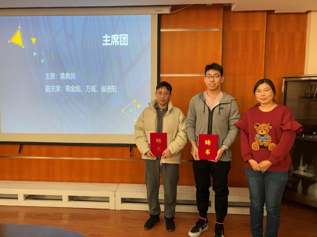 最后宣读新一届研究生会成员名单,并为新一届研究生会成员颁发聘书、合影留念。至此,本次换届大会顺利落幕。