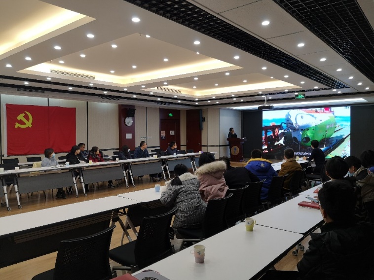 此次会议期间,国家万米级载人潜航器“奋斗号”正在马里亚纳海沟进行海试,已成功实现万米深度下潜。海洋声学技术中心党员刘烨瑶同志承担了首次突破万米等关键潜次的下潜任务,为海试成功提供有力的技术保障。全体党员同志集中学习了刘烨瑶优秀事迹视频宣传片,以身边的同事为榜样,在各自岗位上踏实工作,潜心科研。