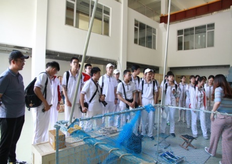 在水声学实验室,科普志愿者为同学们讲解了如何利用消声水池模拟海洋环境开展水声试验。同时,结合北海研究站的科技成果转化产品,科普志愿者讲解了水声换能器、声呐以及渔业资监测系统的工作原理及作用。随后,同学们观摩了声呐从低频到高频在水中的工作过程,通过理论与实践相结合的方式,使同学们切身感受到了海洋声学的独特魅力。