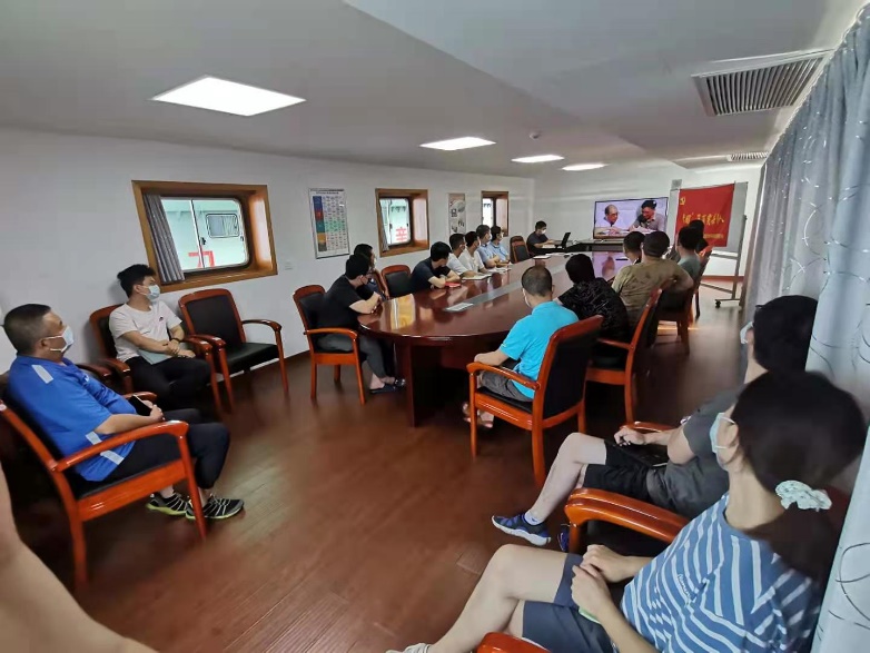 2021818日上午,声学所“德昭”深蓝突击队在杭州千岛湖新安江实验场“实验叁号”船三楼会议室集中学习。会议由水下航行器党总支书记刘明刚主持,突击队队长郝程鹏研究员带领现场参加湖试的突击队成员参加了会议。