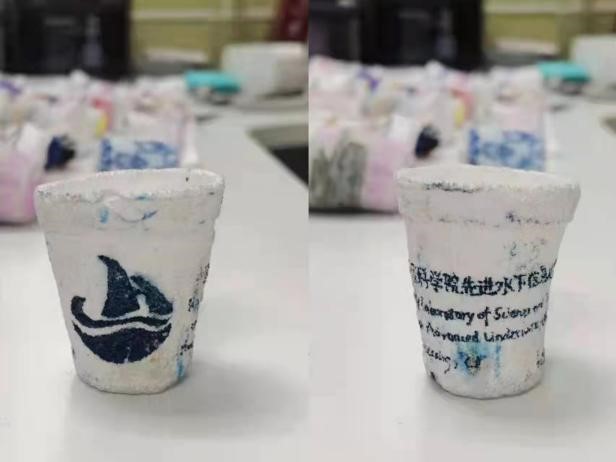 所职工、研究生以及许多感兴趣的小朋友积极参与活动。大家首先在空白泡沫杯画上自己喜爱的图案,随后卫翀华研究员将其带至北冰洋深海的作业点,利用作业设备将杯子送达至北冰洋近4000米的海底。深海的压力让泡沫杯变小,压缩后的杯子变得小巧玲珑、十分可爱。